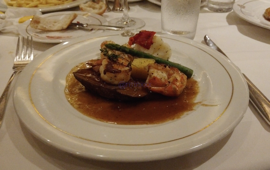 ディナーは前日に交渉していた通り、同じテーブルへ。キャプテンからシャンパンが振る舞われ、娘もオレンジジュースで乾杯。