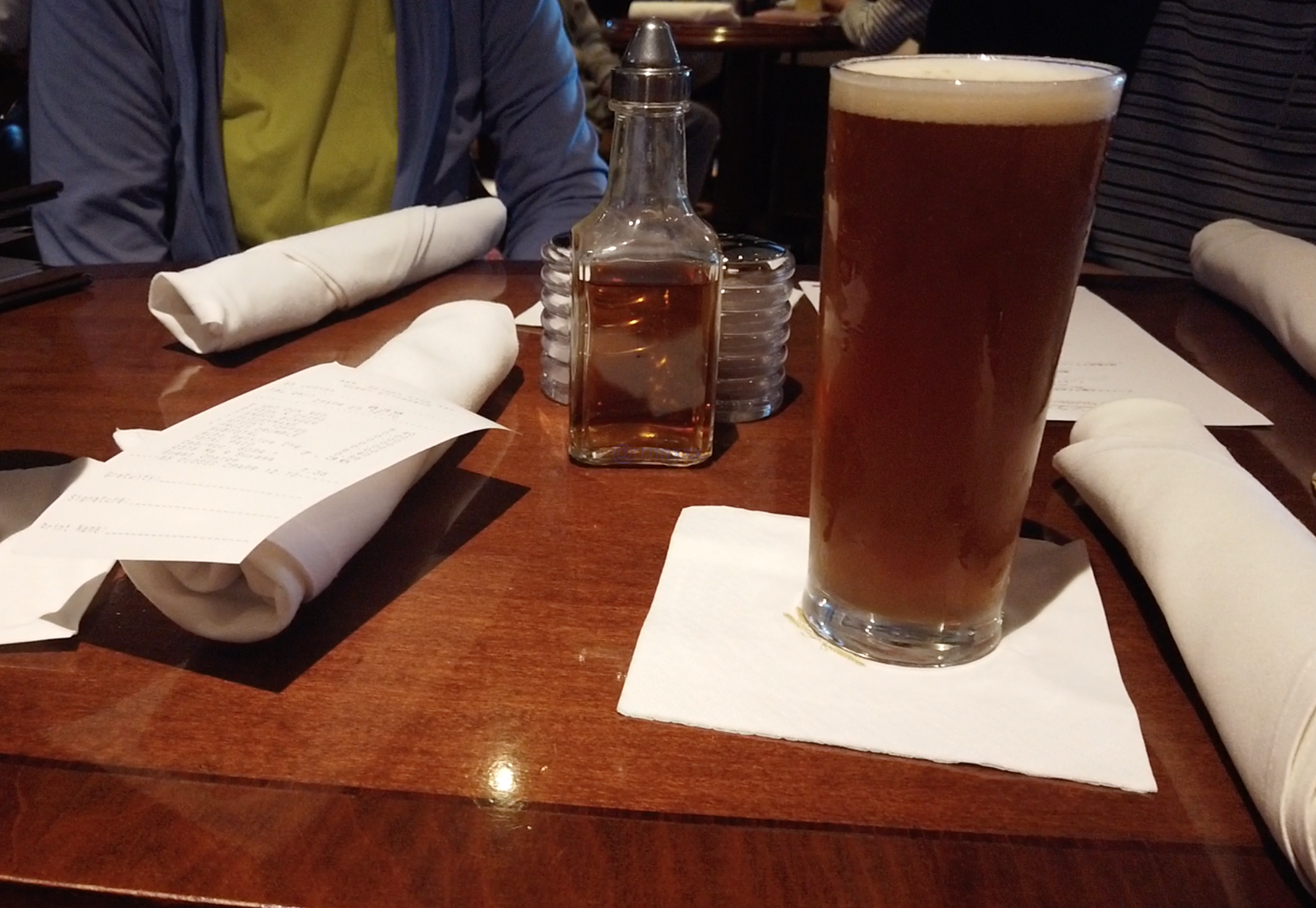 ここでしか飲めないオリジナルビール「RED IPA」を注文。ハーフパイントで3.6ドルとお手頃なのに味わい深く、大満足!