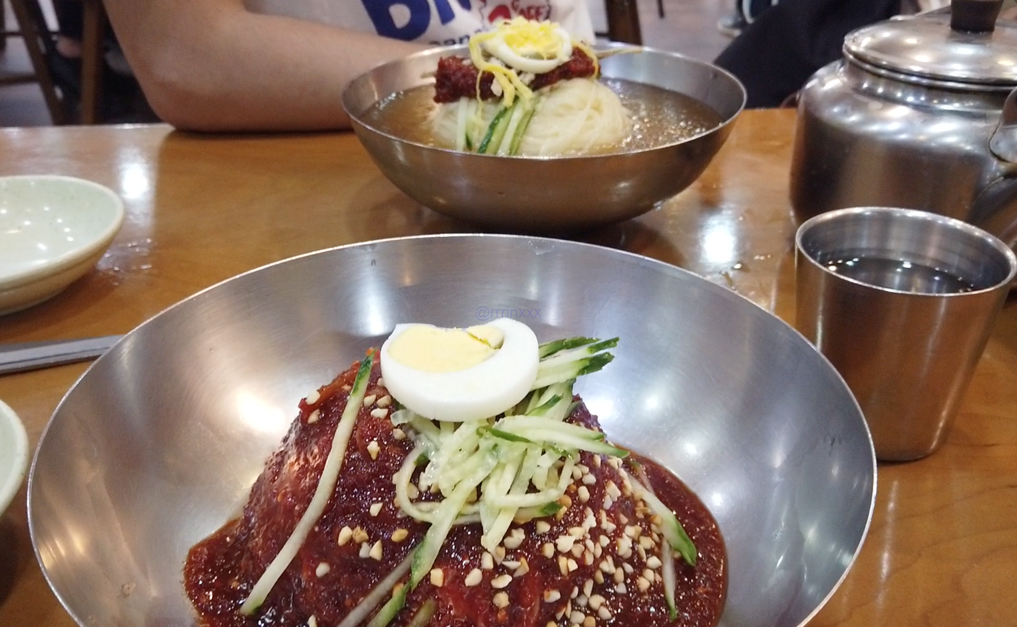 - 大人はピビン麺・ミルミョン(汁あり冷麺)・マンドゥ(蒸し餃子)をオーダー