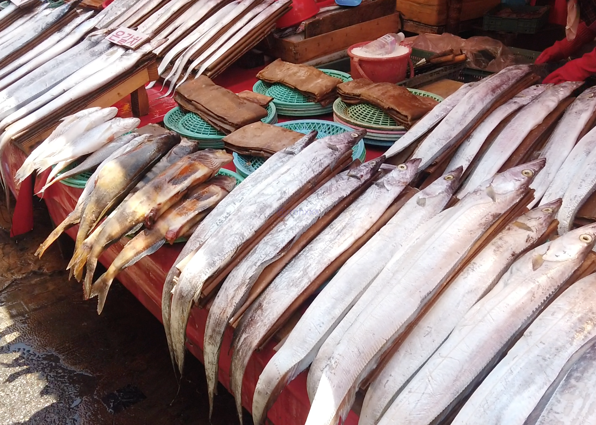 11:30にチャガルチ駅到着。市場までは徒歩5分。太刀魚やタコ、大きなカニが並ぶ様子に娘も大喜び。5月初めですが気温が高く、かなり暑い中での散策になりました。