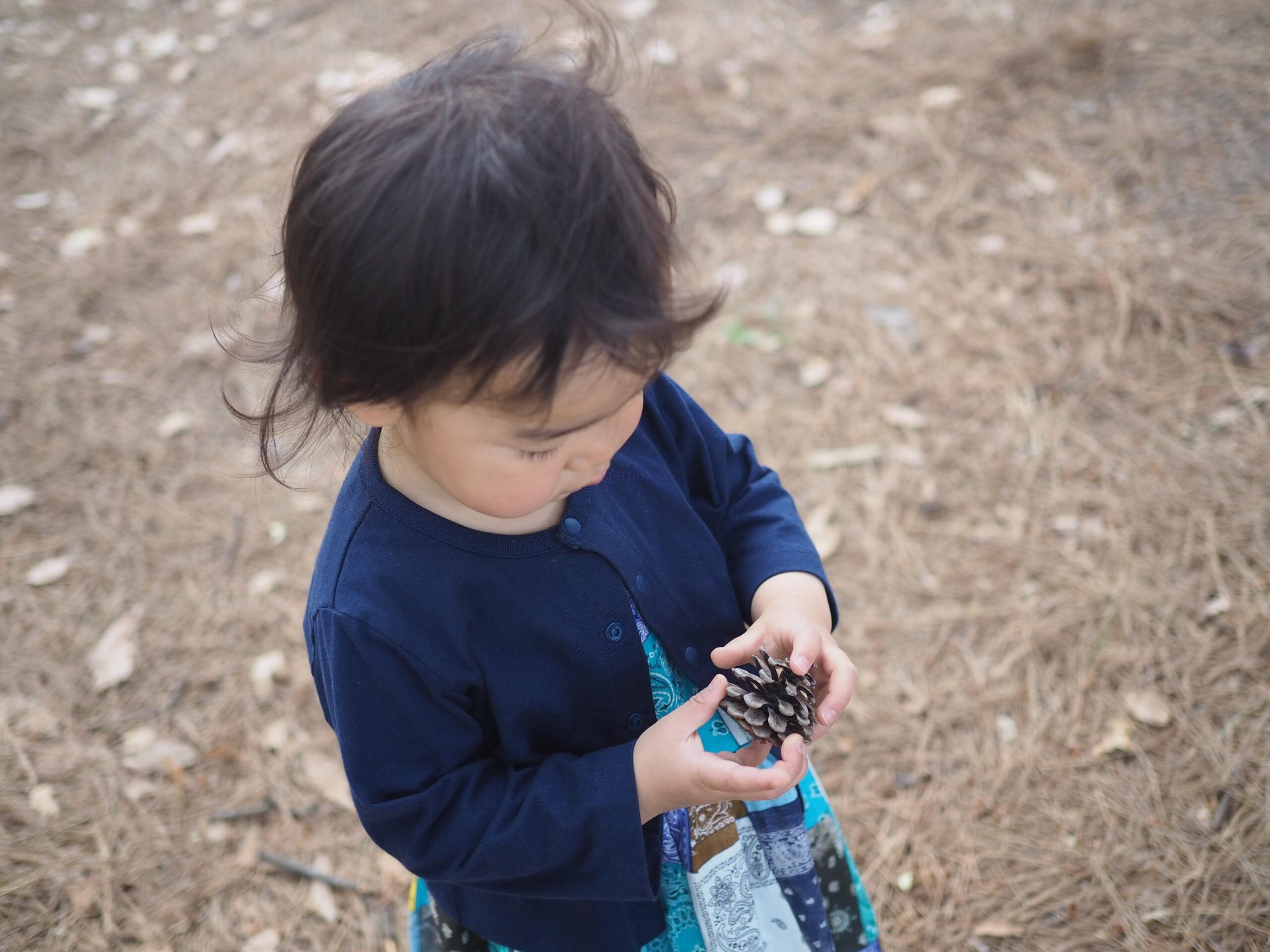 その後は松ぼっくりを拾ったり、ベンチでおやつを食べたり、のんびり過ごしました。