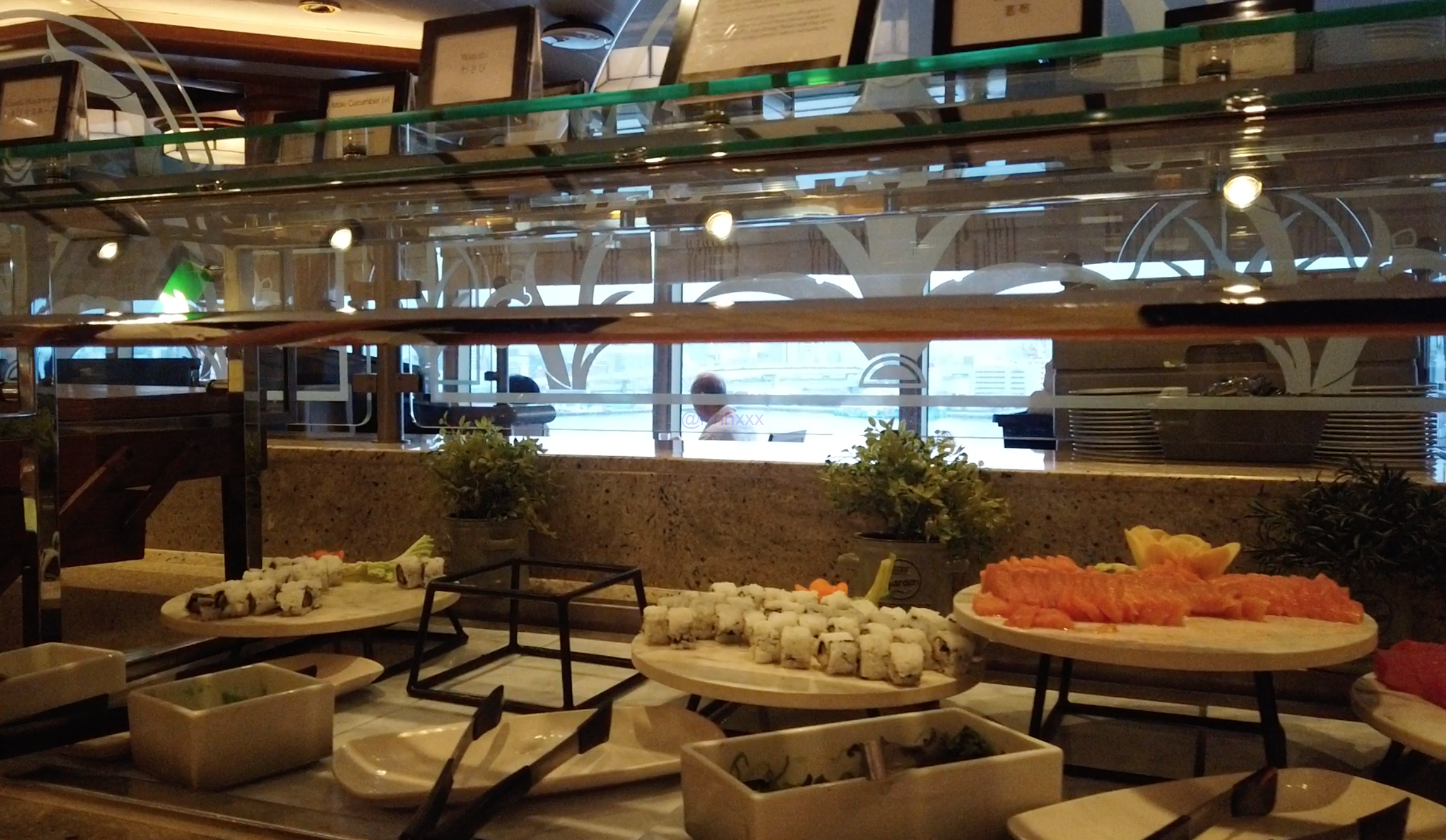 福岡寄港ということもありお寿司や刺身も並び、日本人ゲストに人気でした。ピザは具を選んで窯で焼いてくれるスタイルでしたがやや塩辛く生地も固め。前回乗ったイタリア船のMSCの方がやっぱりピザは好みかも…とまた次のクルーズに思いを馳せました。