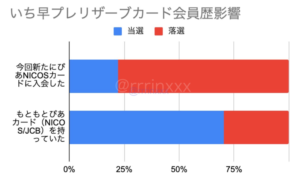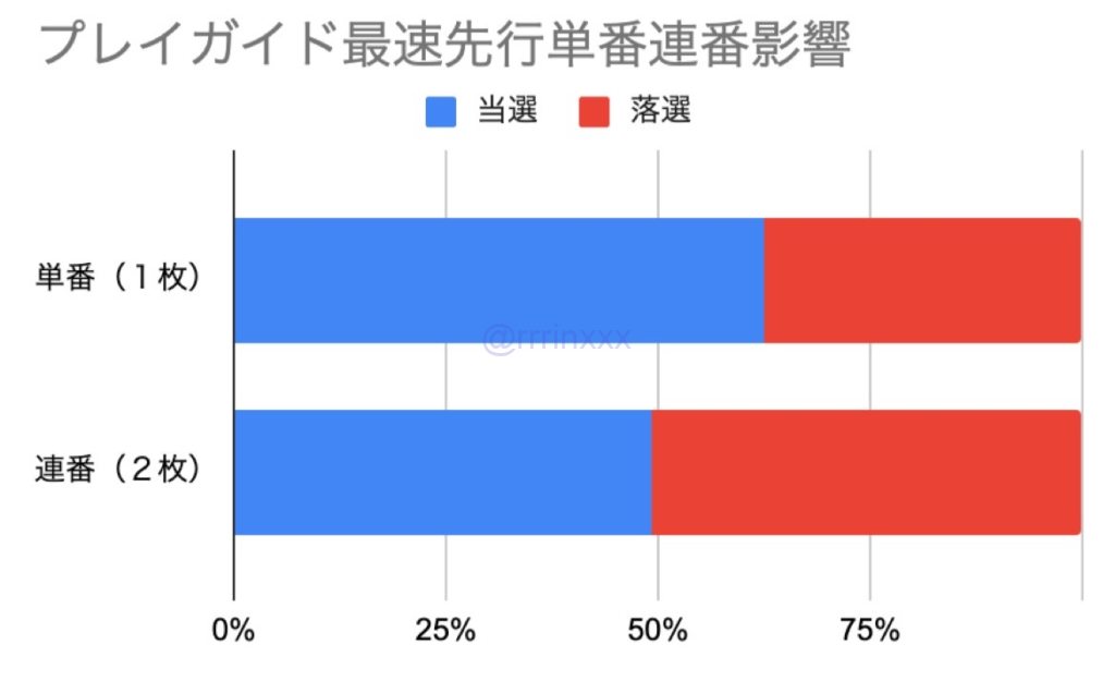 いち早先行の当落は一般先行には影響せずどちらも低め、一般先行のみ申し込んだ人の方が一般先行の当選率は高くなった。