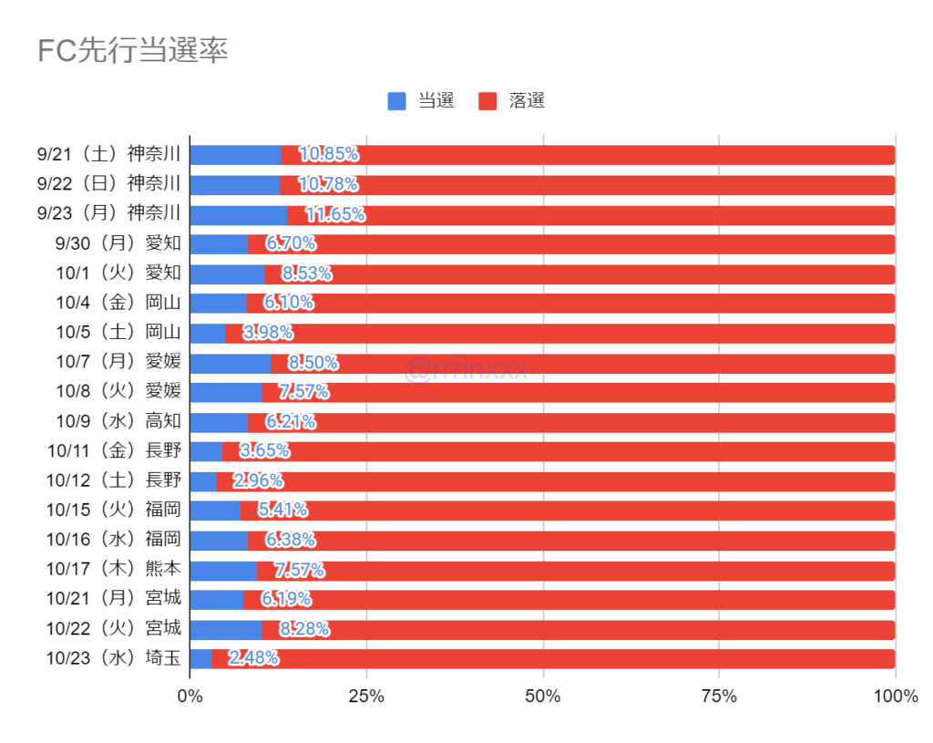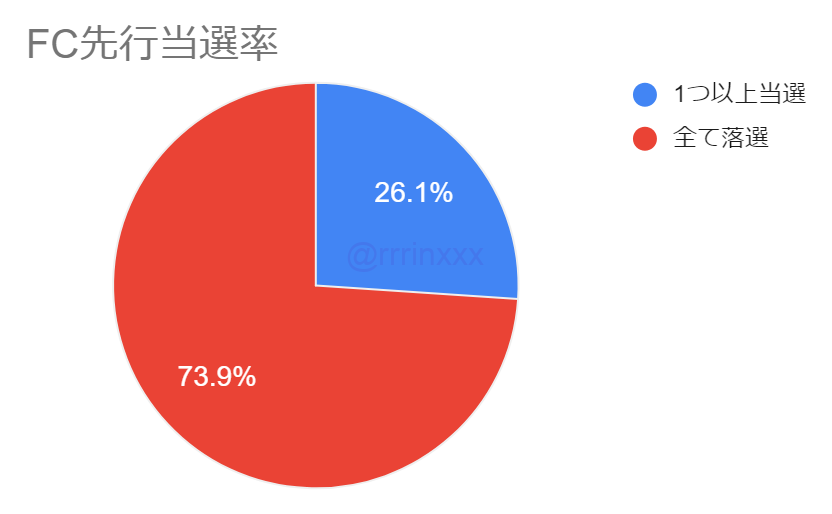 FC最速先行当選者でFC先行も当選している人は数名でした。これはFC最速先行当選者のうち1%以下のため、誤回答等の可能性があります。