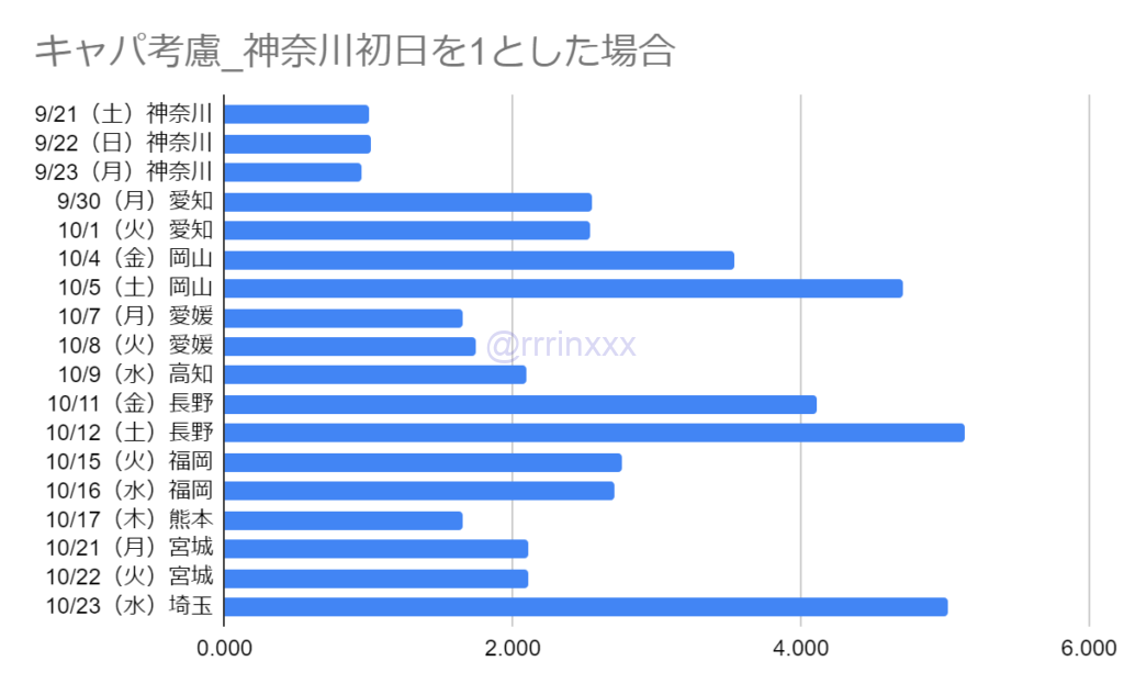 この傾向は10/7愛媛・10/16福岡・10/17熊本以外の全ての公演で見られました(この3公演だけ傾向が違う理由は分からず…)。
