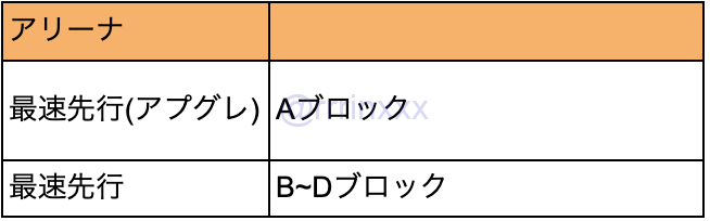 ・アップグレードシートはアリーナAブロック。Aブロックはアプグレ当選者のみの配置。
