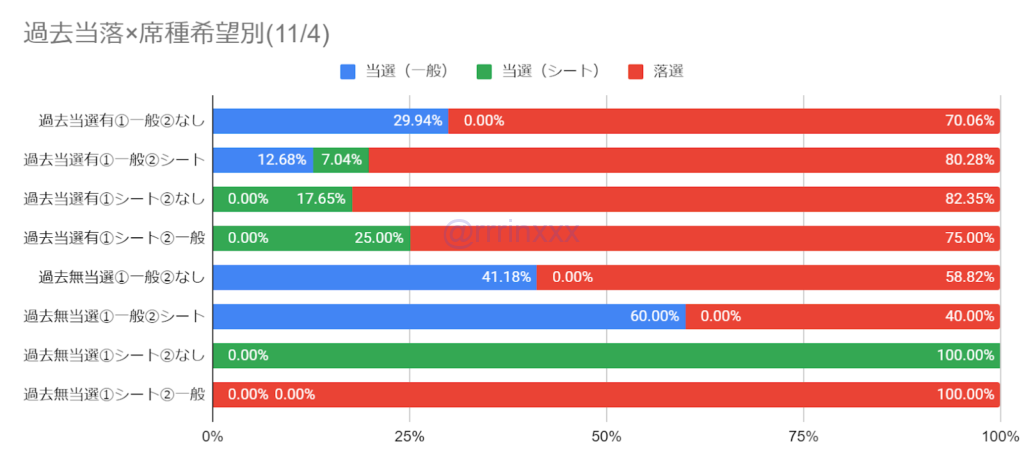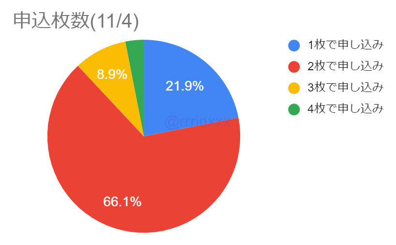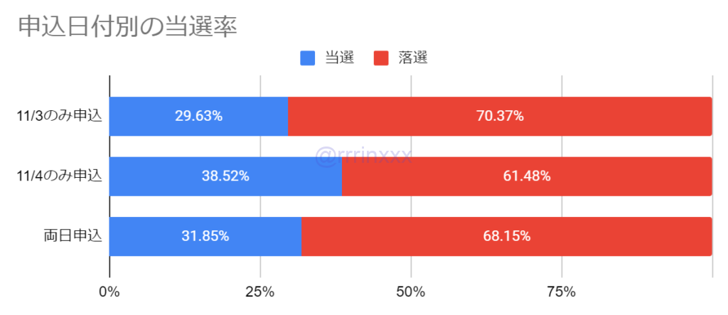 なお、両日申込の場合でも11/4の当選割合の方がやや高く、全体として11/4の当選の方が多いようでした。