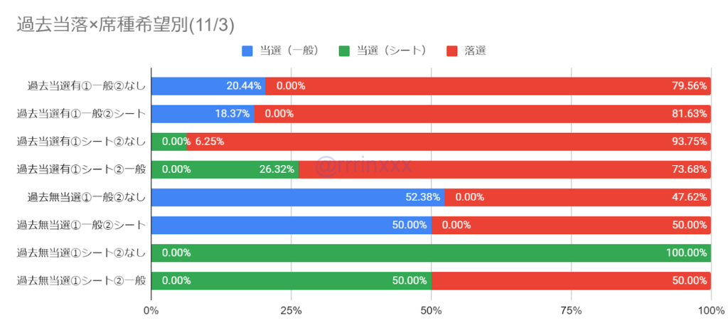 ※過去無当選で第1希望シートエリアの回答数は両日ともに1-2件のため参考程度