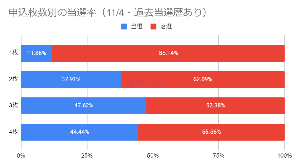 11/4のみ申込の場合、やや当選率が高くなりました。