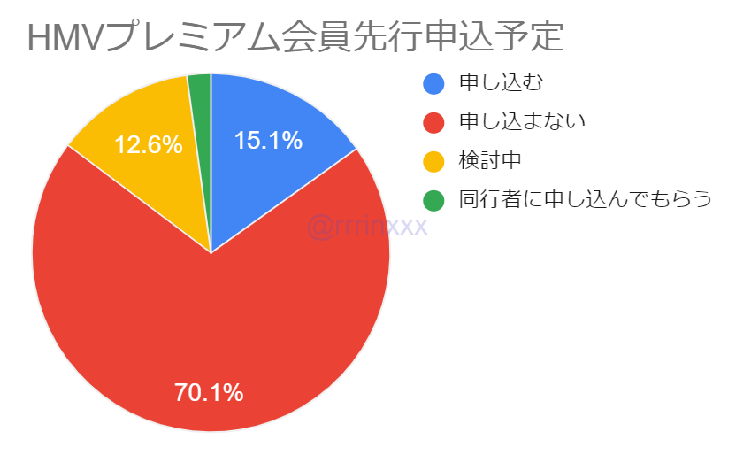 特に「HMV当選・大阪無当選」だと当選率100%ですが、後述の通りHMVプレミアム会員であるかどうかは当落に影響していませんでした。