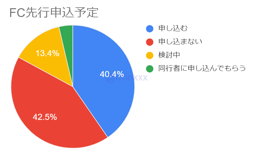 約4割の方がFC先行は申し込まない予定。申込み予定の方のうち4割が両日申込予定。