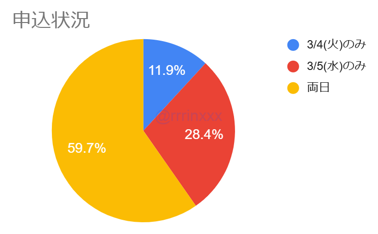半数以上の方が両日とも申し込んでいました。単日だと3/5(水)の方が人気でした。