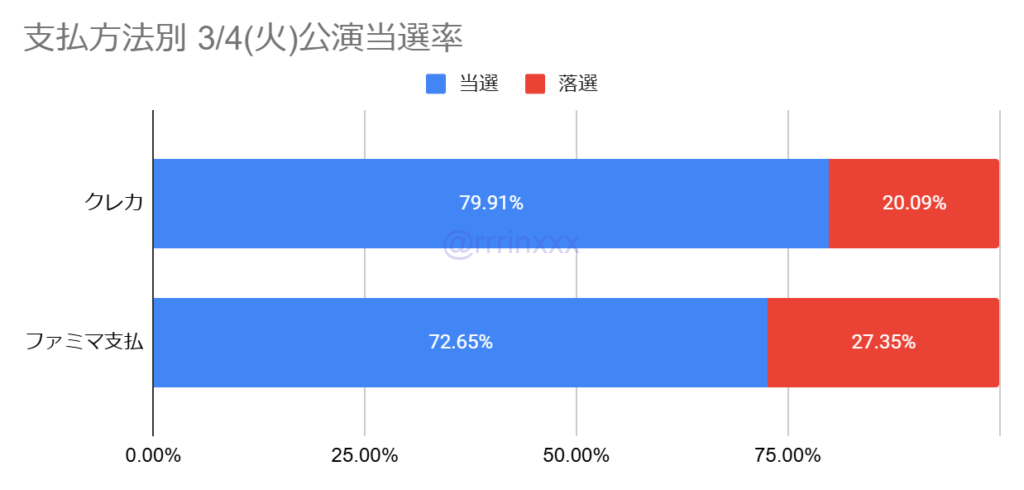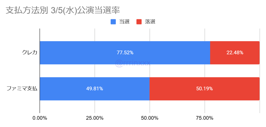 両日ともクレカ払いを選択した方が7割のため参考までですが、両日ともにクレカ払いの方が当選率が高い結果となりました。