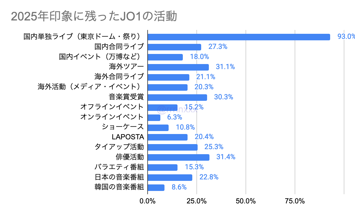 2025年のJO1の活動で印象に残った活動を複数回答(いくつでも)でお答えいただきました。