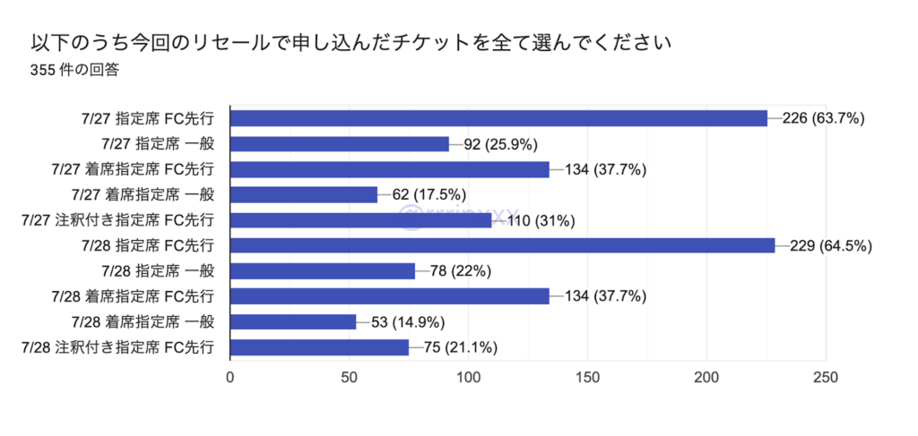 その他コメントで寄せられた意見としては、初日に着席指定席に当選した方は固まって配置がされていたため、おそらく関係者席の空きが開放されたのではという意見もありました。