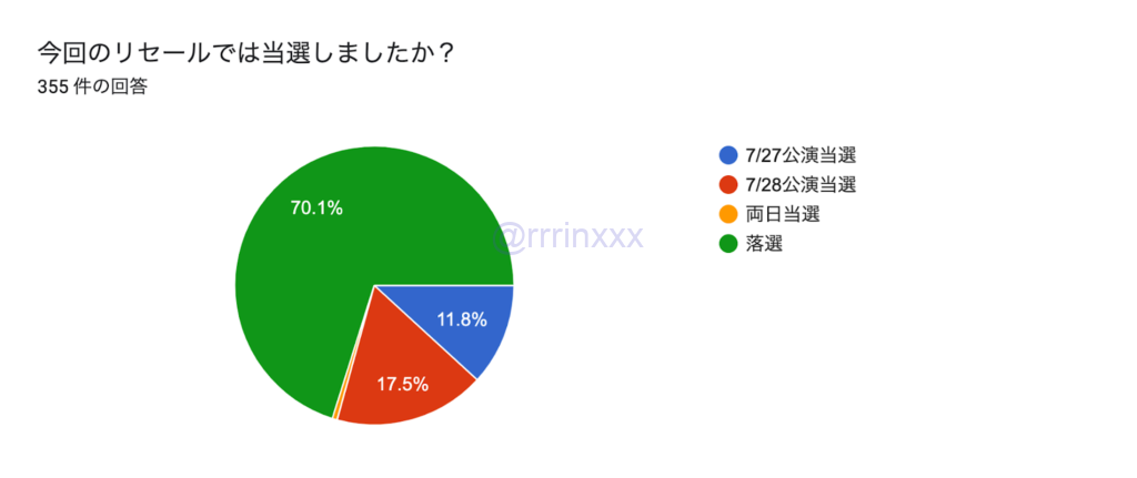 チケット未当選者優遇があったことで、より多くの方にチケットが行き渡るようにされていたのではないでしょうか。両日当選の報告もかなり少なくなっていました。