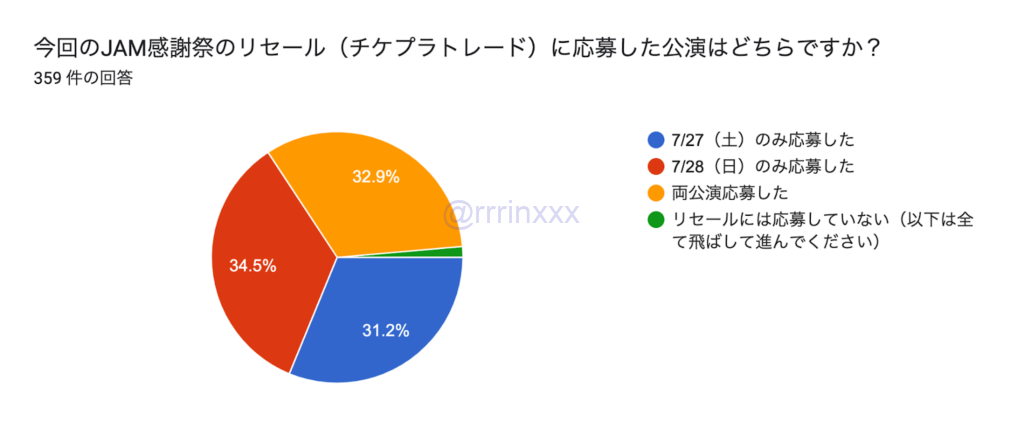 申し込みは、7/27公演のみ,7/28公演のみ,両公演応募がほぼ3分割される結果でした