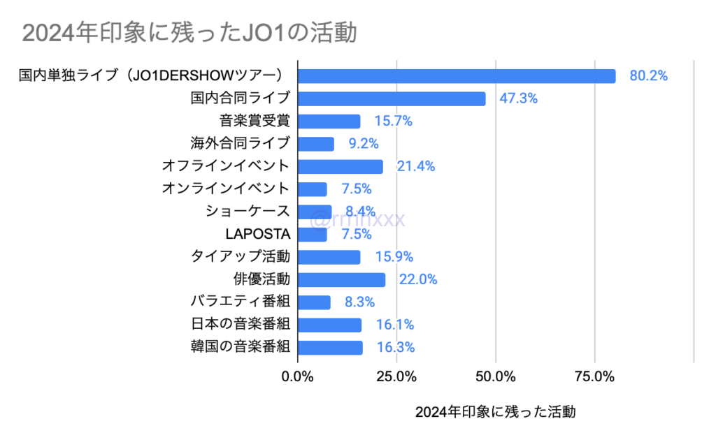 2024年のJO1の活動で印象に残った活動を複数回答(3つまで)でお答えいただきました。