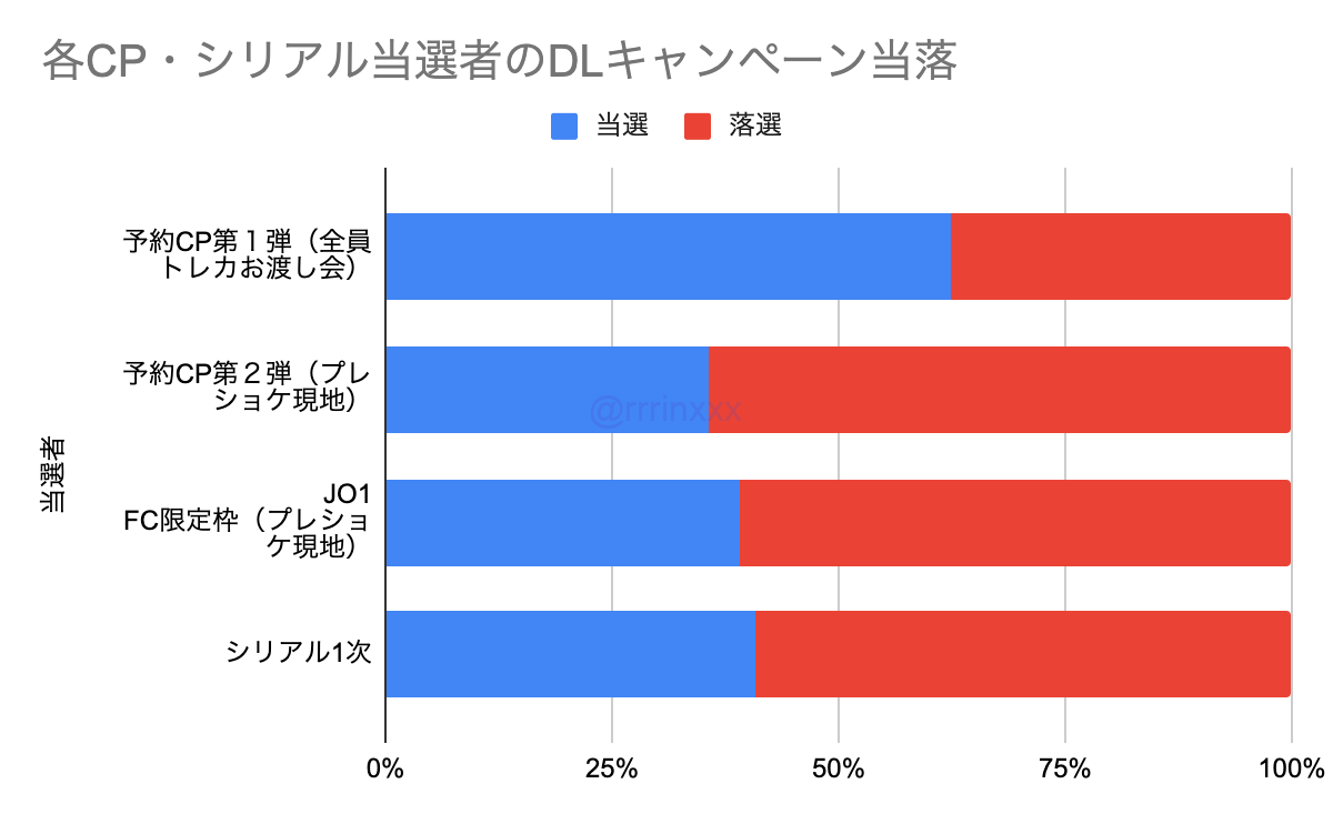 下記グラフは、1枚目が「それぞれのCP・シリアルの当選者」2枚目が「それぞれのCP・シリアルの落選者」の、今回のダウンロードキャンペーンの当選率を示したものです。