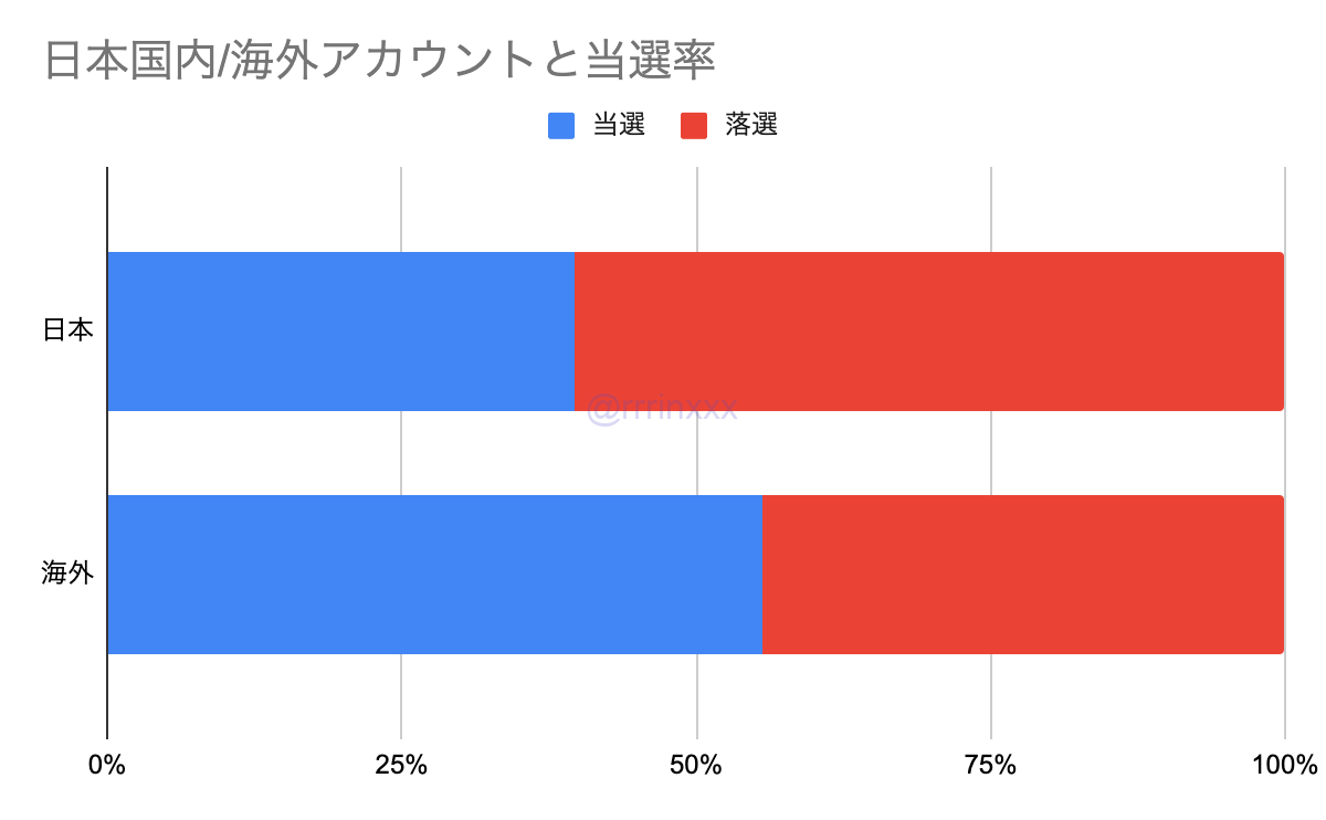 海外アカウントの方が当選率が高くなっていました。
