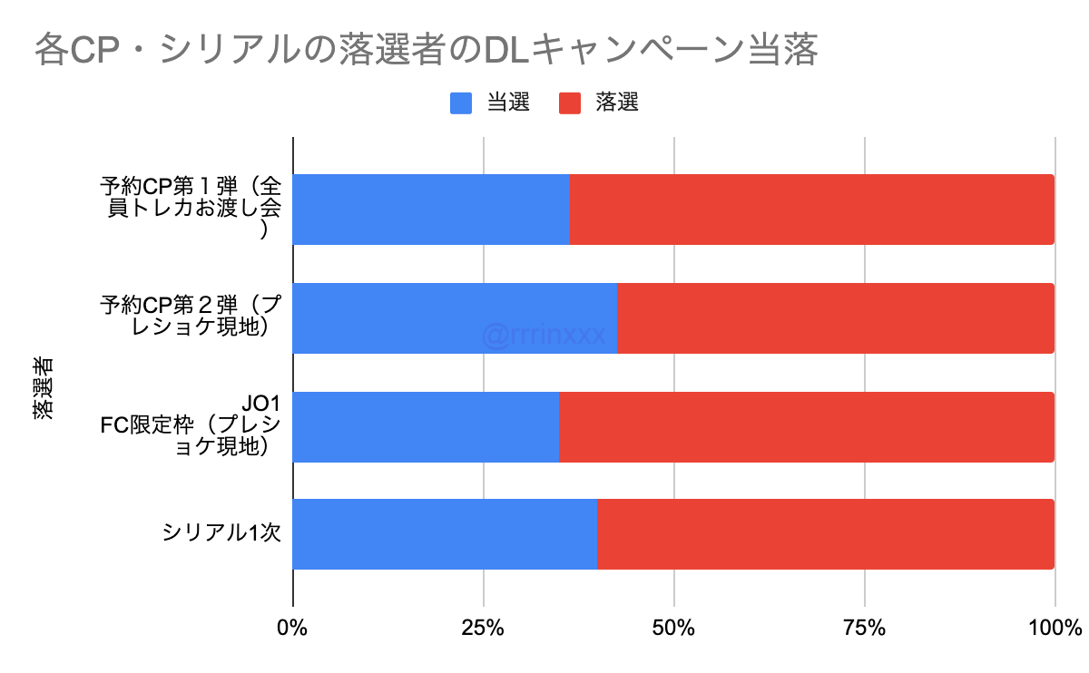 下記グラフは、1枚目が「それぞれのCP・シリアルの当選者」2枚目が「それぞれのCP・シリアルの落選者」の、今回のダウンロードキャンペーンの当選率を示したものです。