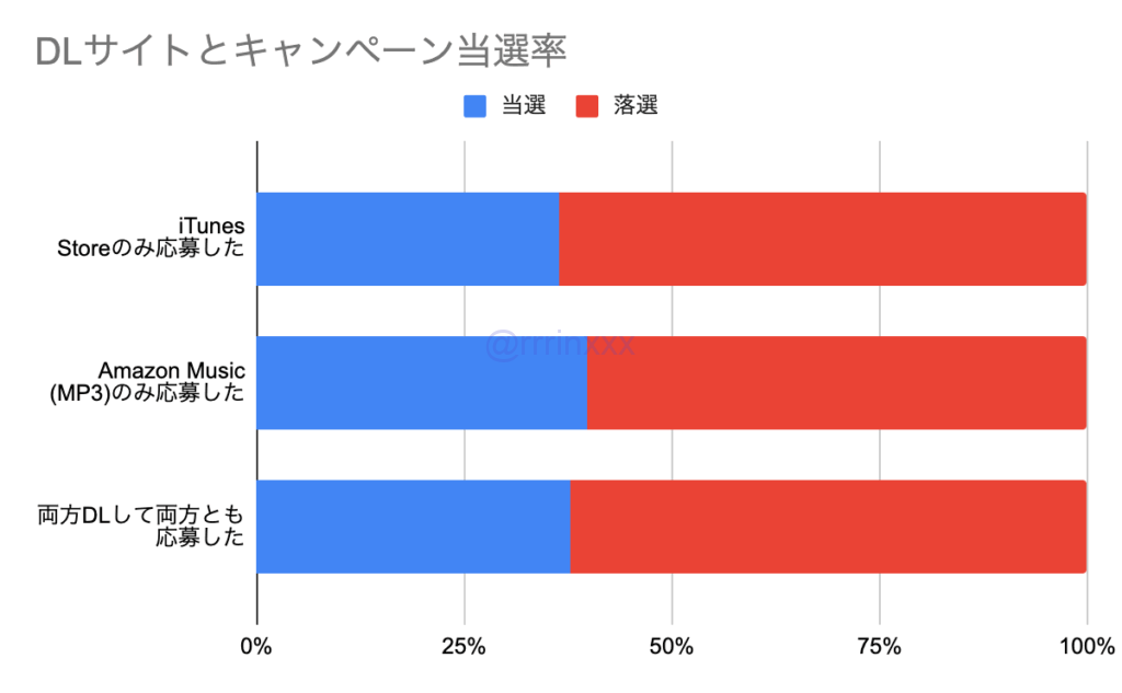 音源DLサイトはiTunesでもAmazonでも影響はなく、両方からDLして応募しても当選率が高くはなっていませんでした。