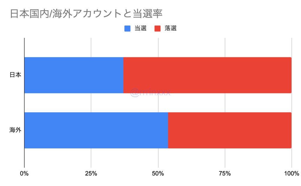 海外アカウントの方が当選率が高くなっていました。