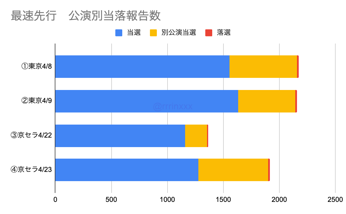 4公演申込者は、③京セラ4/22公演を優先して当選になっていると推察します