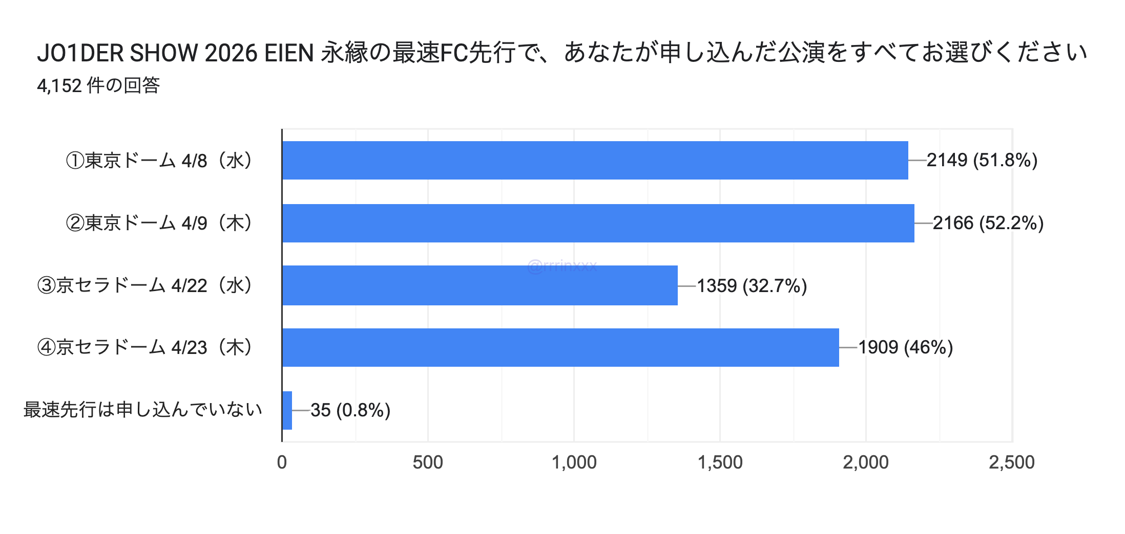 この記事は2026年4月に行われるJO1DER SHOW 2026 EIEN 永縁の東京ドーム/京セラドーム公演FC最速先行当落アンケートレポートです。