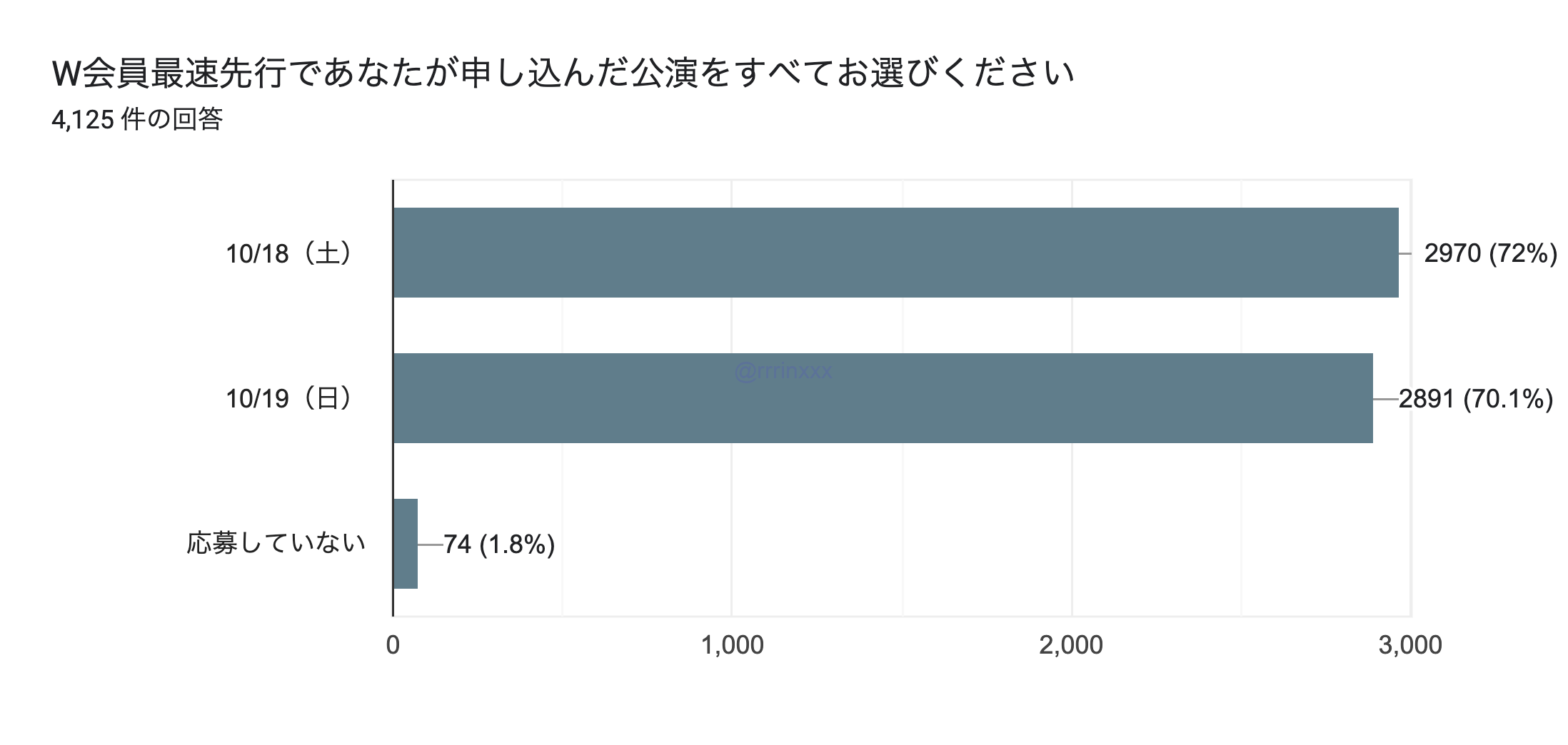 なお、各公演の当落はあくまでその公演への申し込みの当落のため、「落選者」には、もう一方の公演での当選者が含まれます。