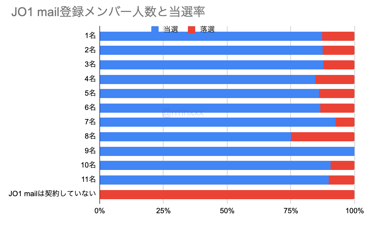 また、JO1 mailの登録人数や、継続状況は当選率に影響はありませんでした。