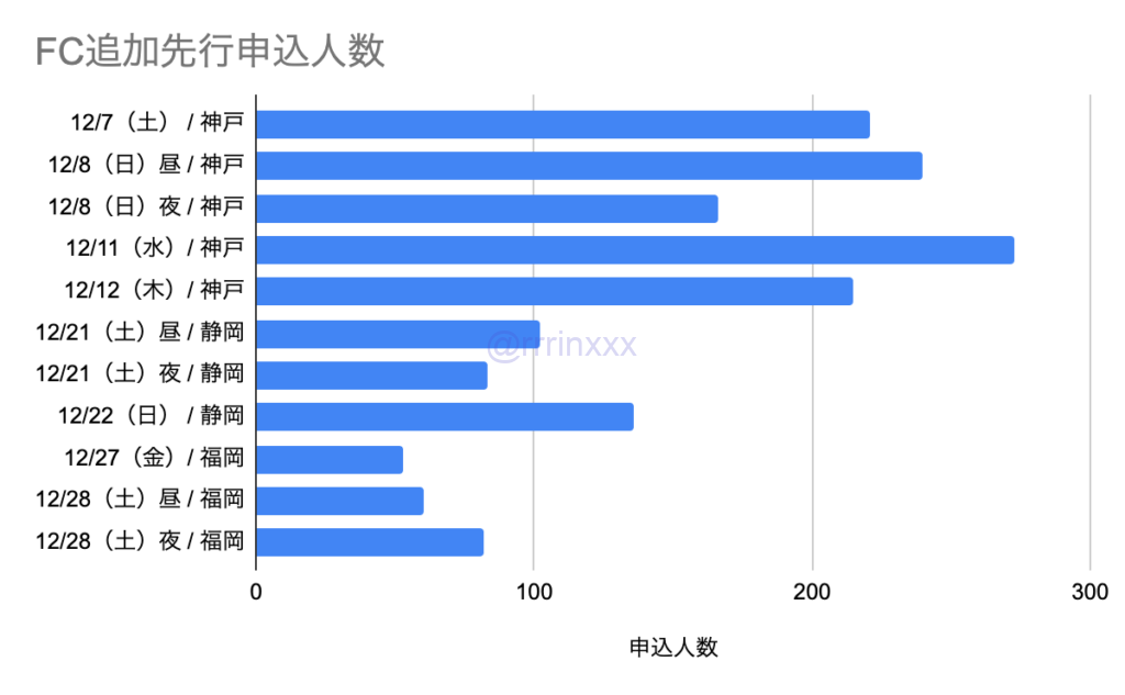 今回、神戸と静岡・福岡で申込期間と当落発表日時が異なっていましたが、同一のフォームにてアンケートをさせていただきました。