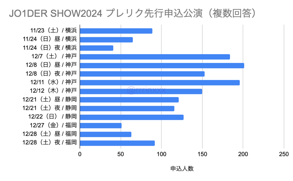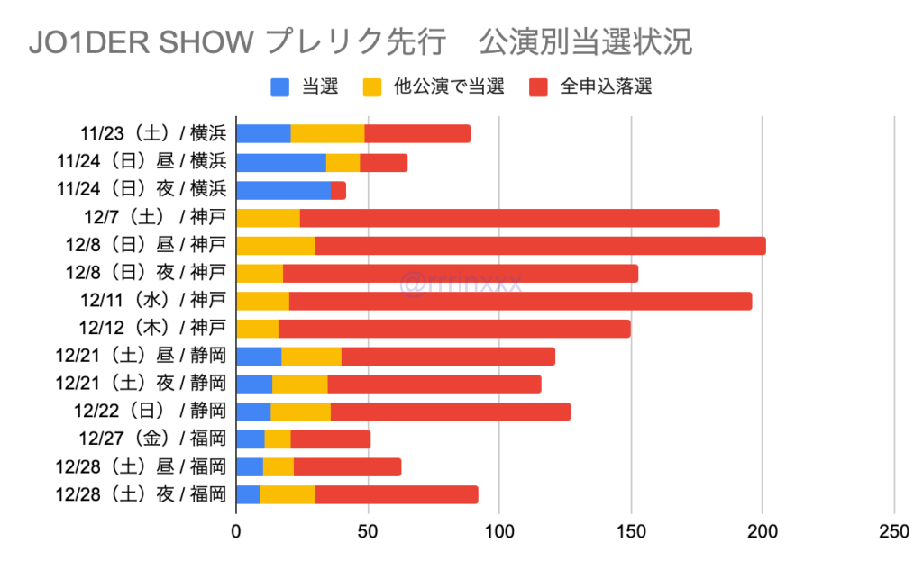 公演別での当選状況は下図の通りです。神戸全公演について当選報告はありませんでした。