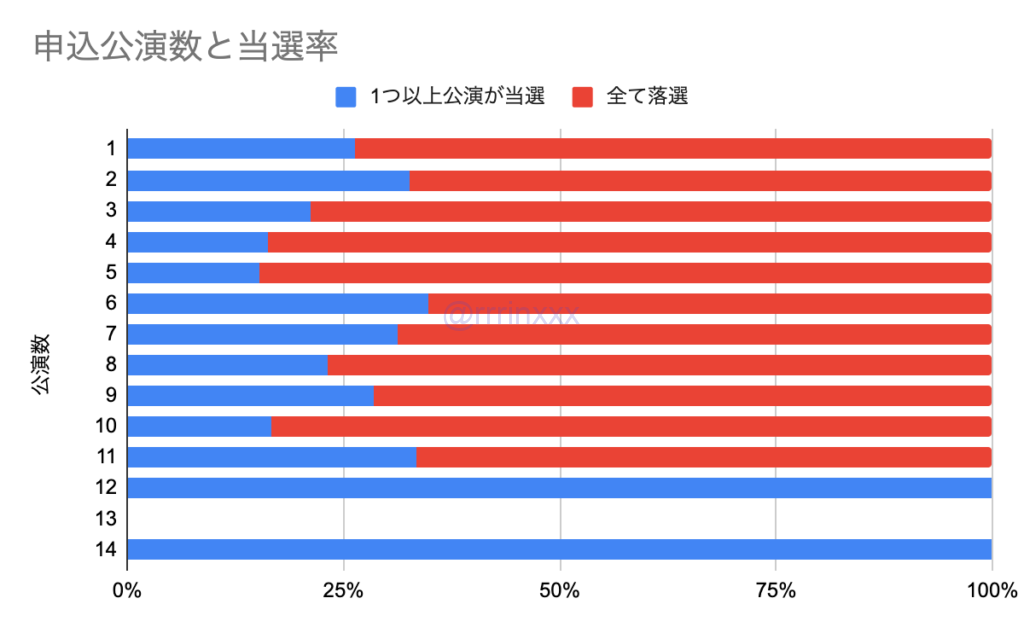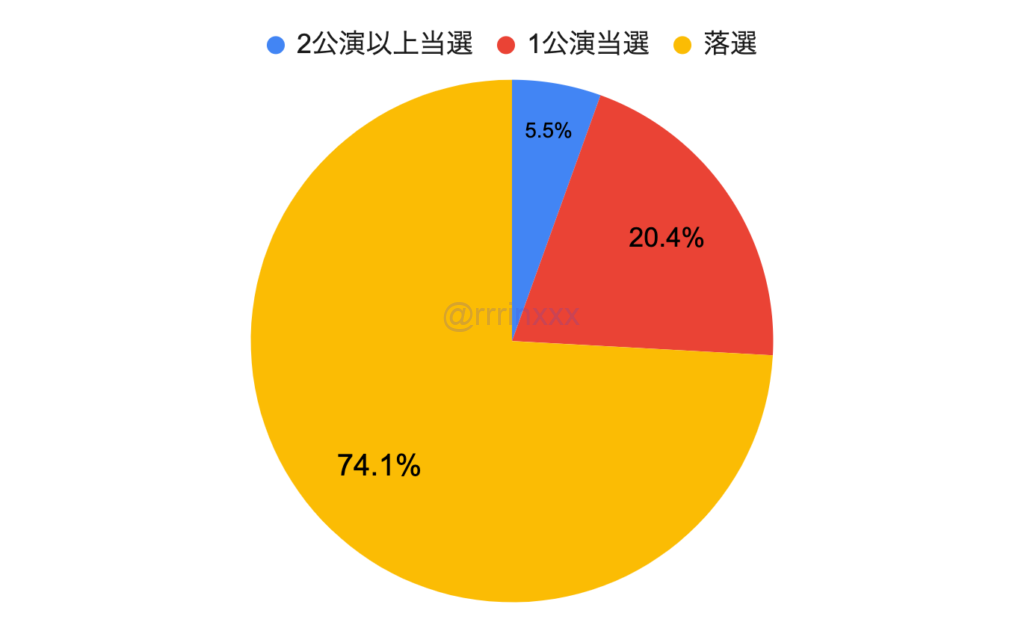 また、複数公演の当選は1先行のみ当選者で一部、一度も当選したことがない方で多く見られました。