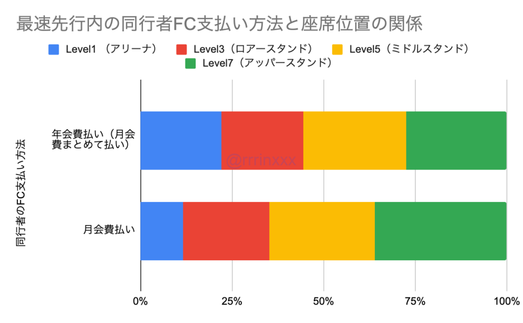 ・同行者のFC会費支払い方法:今回、最速FC先行でも同行者のFC支払い方法は年会費・月会費払いどちらでもOKでした(申込者は年会費払いもしくはJO1は2019年から継続月会費会員のみ可)。最速FC先行内で、同行者が月会費払いの場合、同行者も年会費払いの場合に比べて10%ほどアリーナ率が低くなっていました。申込者の支払い方法は、月会費の継続会員と年会費会員での違いはありませんでした(JO1の場合)。