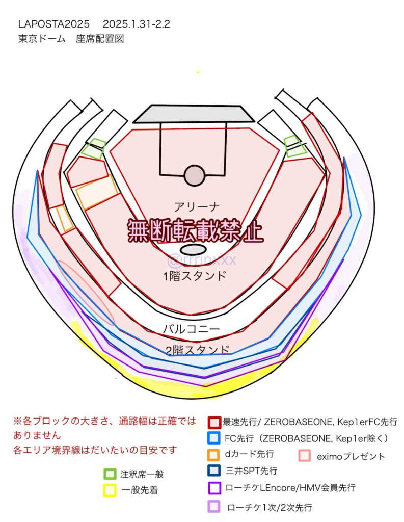 ただし、先述の通り、ZEROBASEONE,Kep1erに関してはFC先行が実質最速先行であったことから、最速先行と同等の座席配置となっていました。
