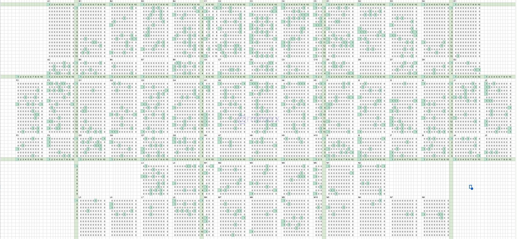 かなり小さく見づらいですが、「1」と書いて色が塗られているのが報告がある席番号です。連番は反映できていません。
