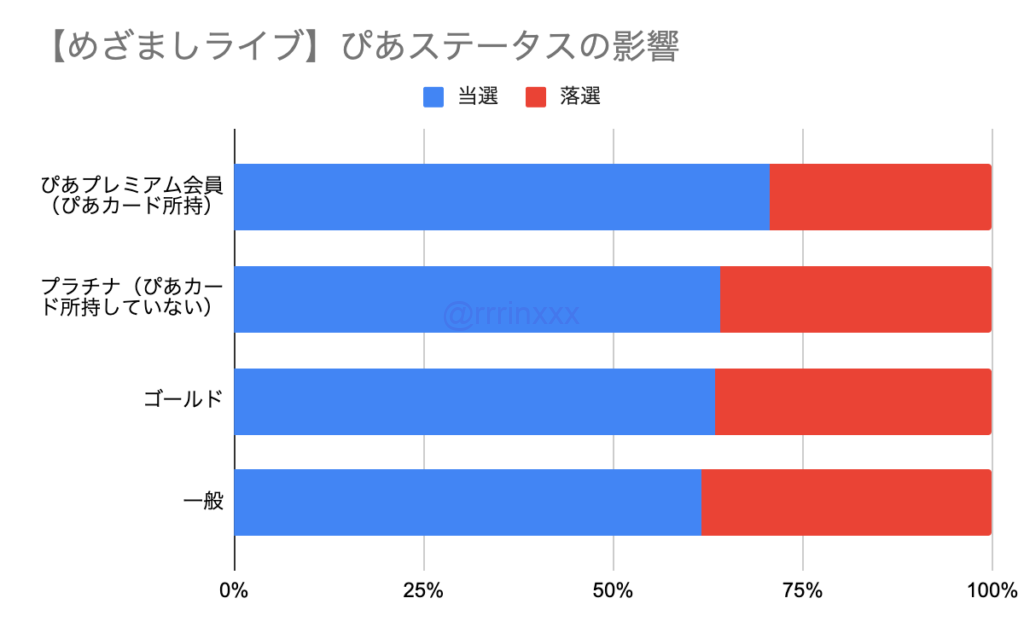 ぴあステータス別に見ると、ぴあプレミアム会員(ぴあカード会員)がやや当たりやすい傾向ですが大きくは変わりませんでした。