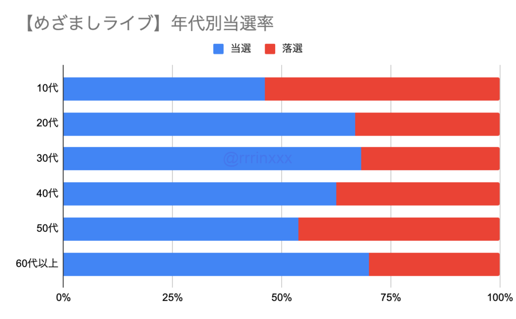 年代と当選率に大きな相関はありませんでした。10代が低めになっているのは、他年代に比べてコンビニ決済多めであることが要因と考えます。