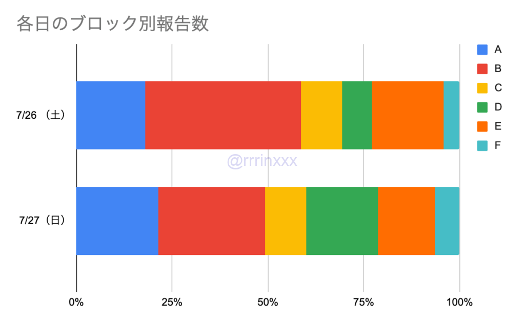 そのため、7/26の方が、前方中央ブロックであるBブロックの割り当ての割合が高くなっていました。