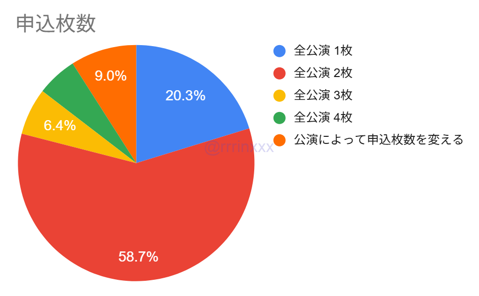 複数枚申し込む方は同行者と違う公演をそれぞれ申し込む方と同じ公演を申し込む方がほぼ同数でした。