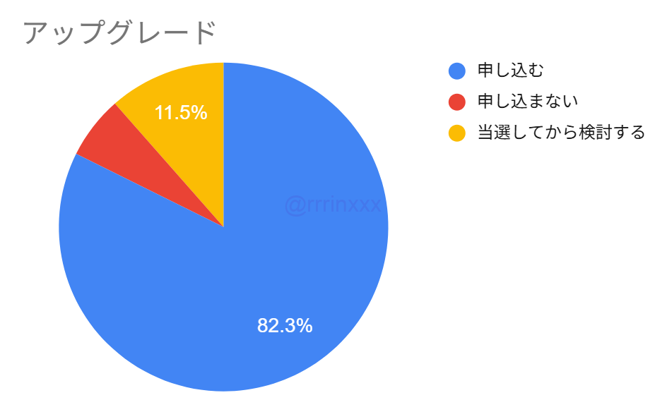 最速先行抽選後に行われるアップグレード席の抽選は、回答者の8割以上が申込予定と回答されました。