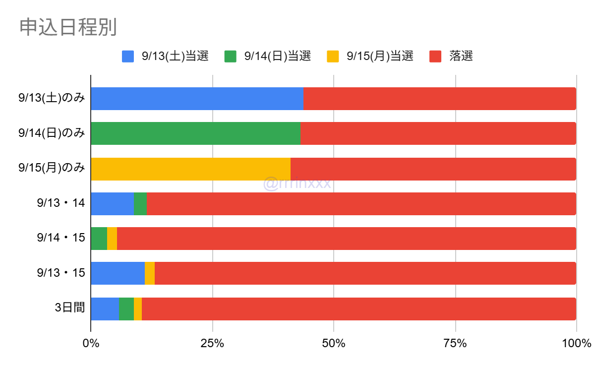複数公演申し込んだ場合は9/13(土)で当選するケースが多かったです。