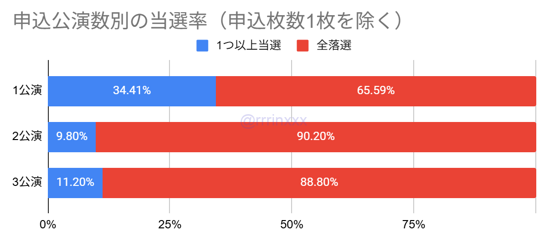 1公演のみ申し込んだ場合の方が当選率が大きく高い結果となりました。