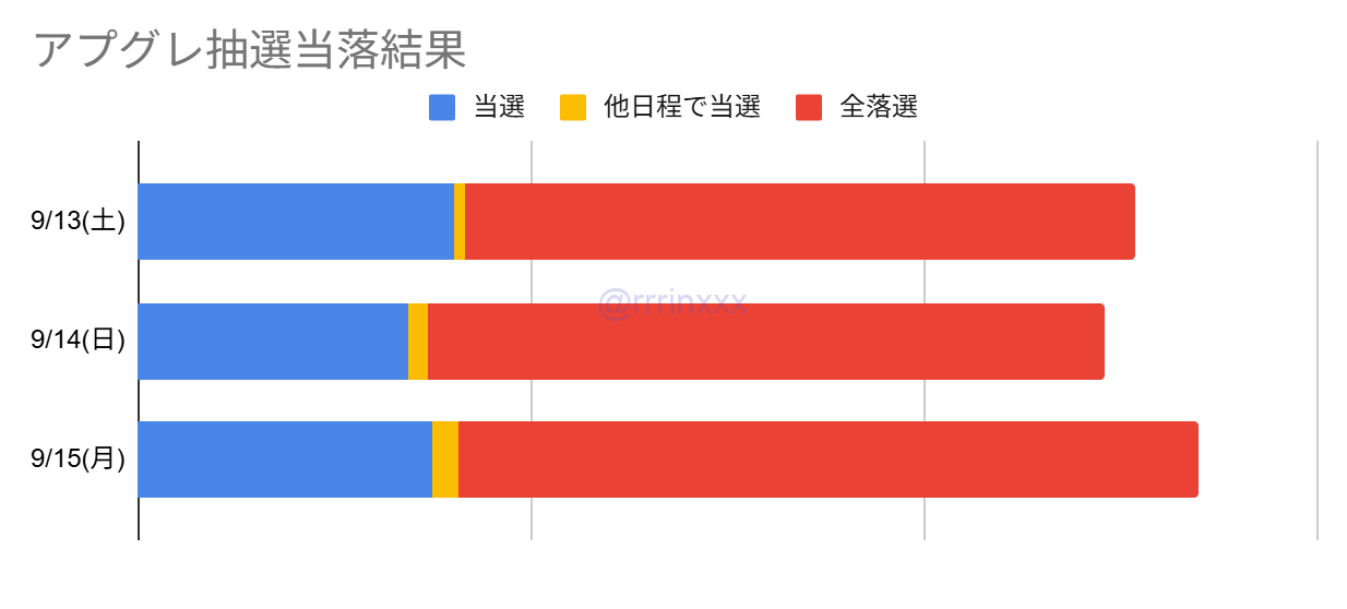 複数公演申し込んだ場合は9/13(土)で当選するケースが多かったです。