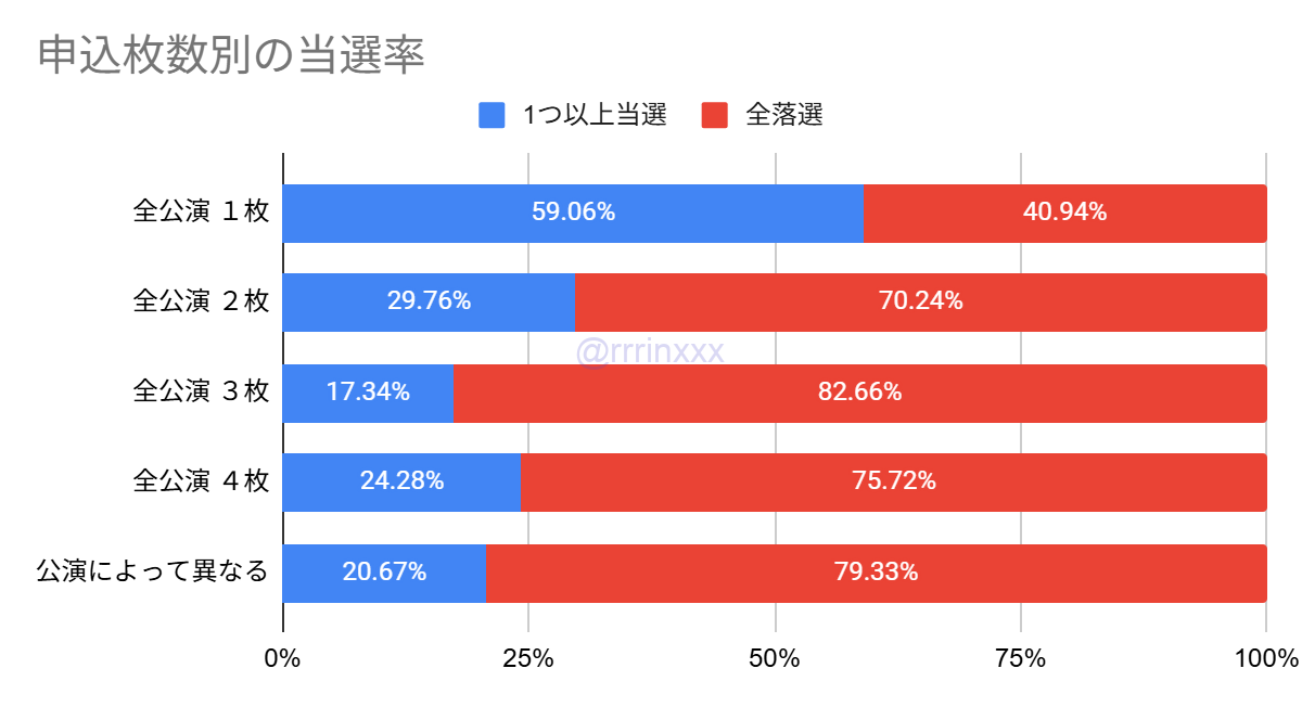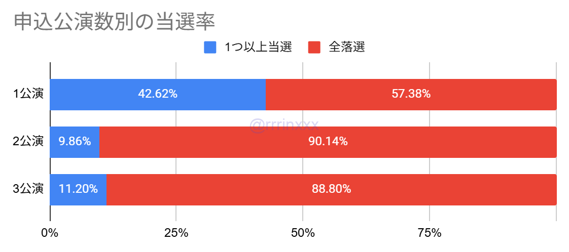1公演のみ申し込んだ場合の方が当選率が大きく高い結果となりました。